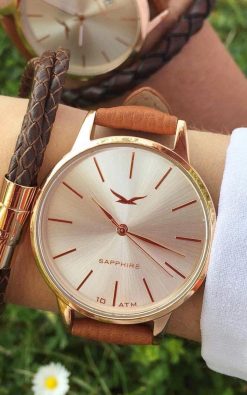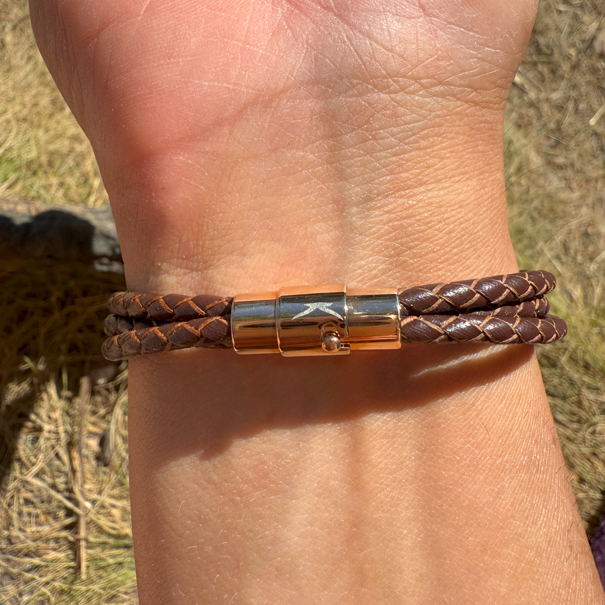 Bracelet Brown Leather 18,5cm Rosé Clasp