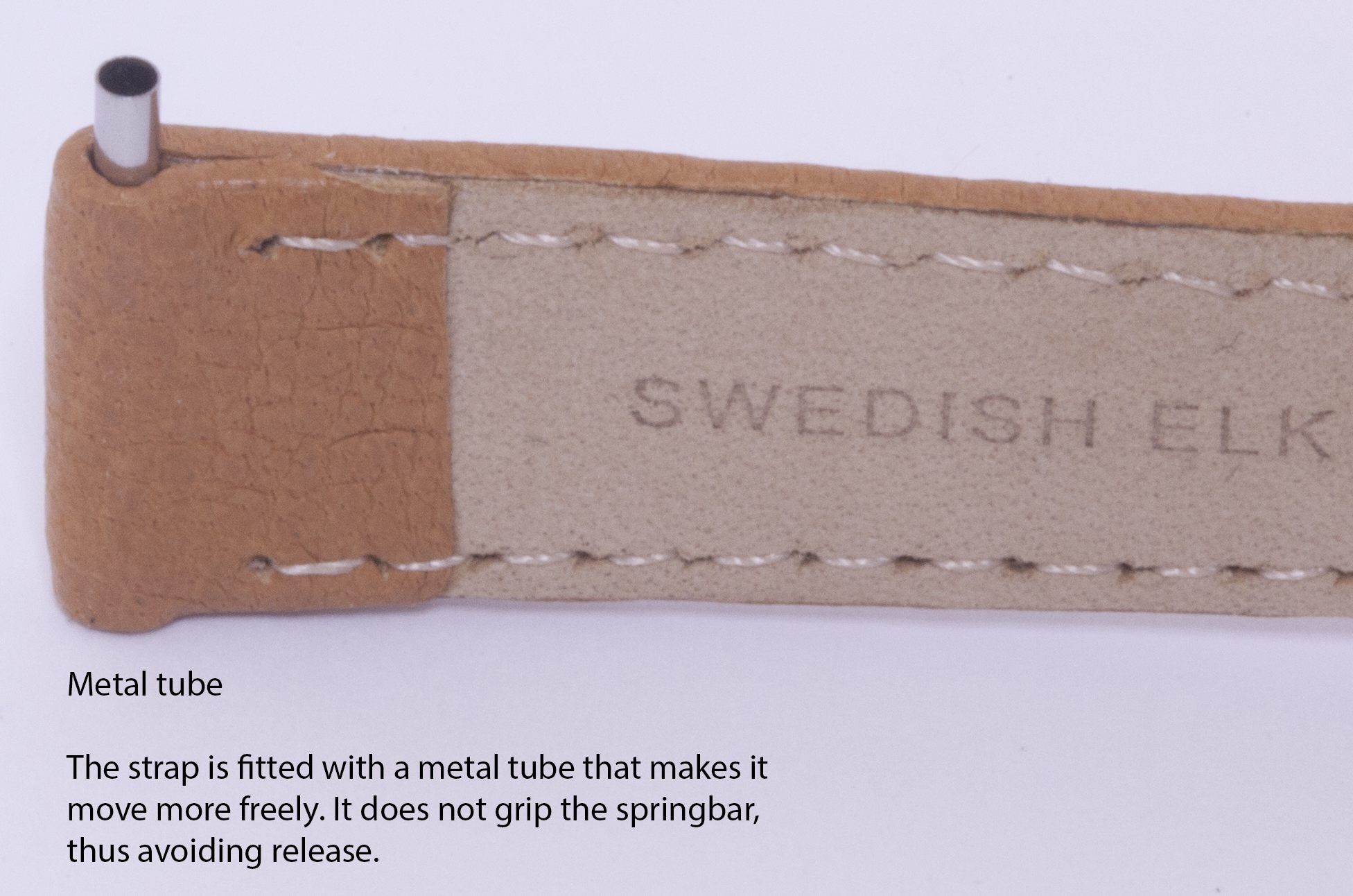 The straps were fitted on watches worn by our employees. This real-life testing lasted several months and included exposure to salt and fresh water, wearing the strap while showering, being in the sauna, while doing manual labour, gardening and 24/7 use.